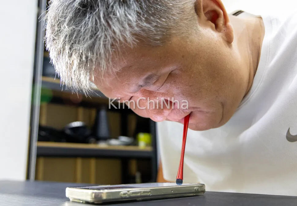 Một người đàn ông có vóc dáng vạm vỡ, cao gần 1m80, nằm nghiêng trên giường. Anh khẽ cúi đầu, mím môi và dùng miệng ngậm một cây bút cảm ứng. Từ từ di chuyển đầu, anh chạm vào màn hình điện thoại đặt bên cạnh, cẩn thận nhấn từng phím chữ cái. Dù chậm hơn rất nhiều so với dùng ngón tay, nhưng cử chỉ của anh khá thuần thục. "Làm mấy năm rồi nên quen thôi," người đàn ông 37 tuổi, Okhina, nói một cách thản nhiên.
