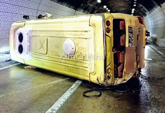 Xe buýt chở học sinh tiểu học bị lật trong hầm trên đường cao tốc Yeongdong, 6 người bị thương