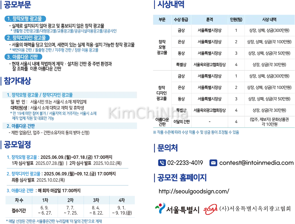 Giải Khuyến khích: 4 giải - Nhận giải thưởng của Hiệp hội Quảng cáo ngoài trời Seoul và 100,000 won.