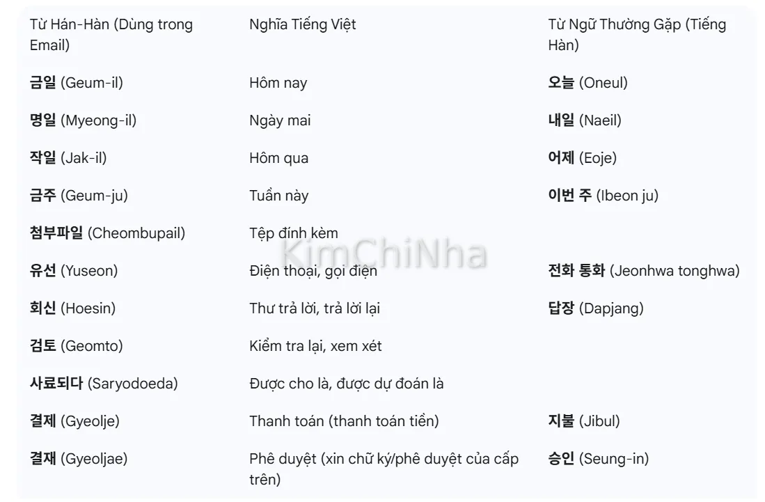 Đây là các từ Hán-Hàn mà người Hàn thường dùng trong email, dễ gây nhầm lẫn: