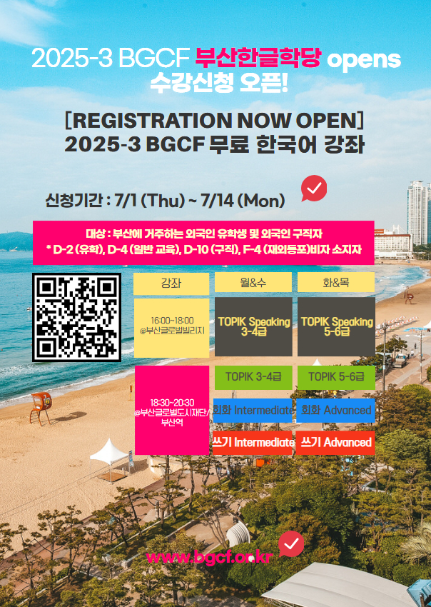 🏖️ Hãy cùng nâng cao khả năng tiếng Hàn, trải nghiệm văn hóa địa phương và kết nối bạn bè toàn cầu tại Busan! Đừng bỏ lỡ cơ hội học tập và giao lưu miễn phí cực kỳ giá trị này!