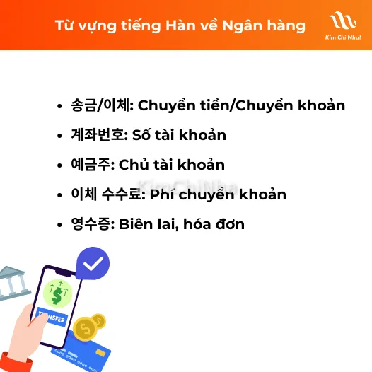 - 송금/이체: Chuyển tiền/Chuyển khoản