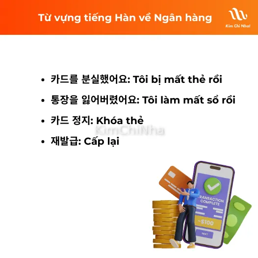- 카드를 분실했어요: Tôi bị mất thẻ rồi
