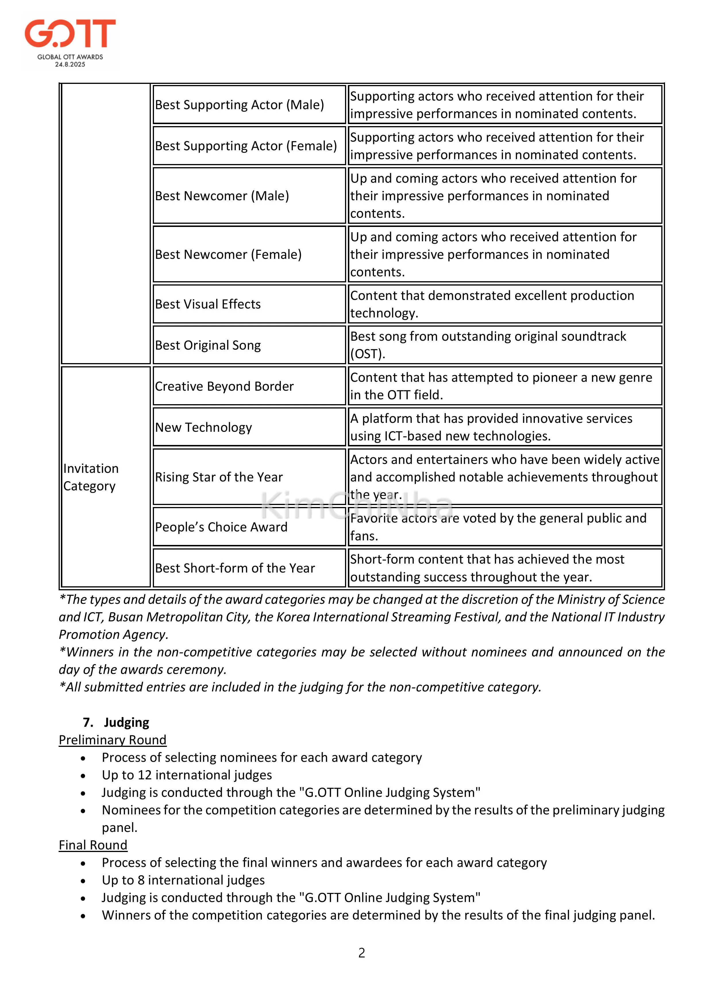 🏆 Điều kiện dự thi: Tác phẩm phải có ít nhất 1 tập mới phát sóng trong khoảng 1/8/2024 đến 30/6/2025 Nội dung đã hoặc đang được phân phối qua nền tảng OTT (Netflix, TVING, Wavve, Watcha, YouTube...) Có thể phát hành song song/trước/sau trên TV, IPTV, web, mobile Không chấp nhận TVC quảng cáo, trailer thương mại độc lập