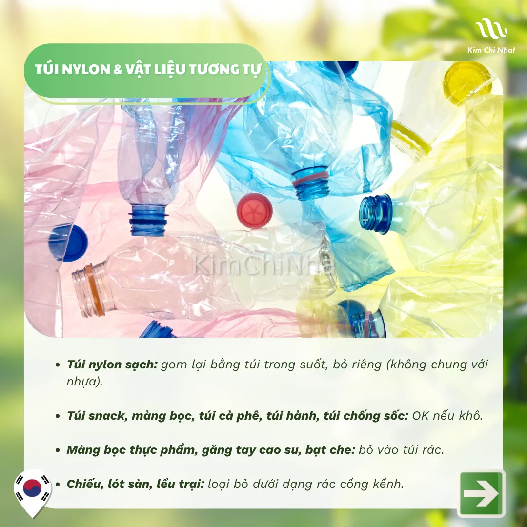 Túi nylon sạch: gom lại bằng túi trong suốt, bỏ riêng (không chung với nhựa).