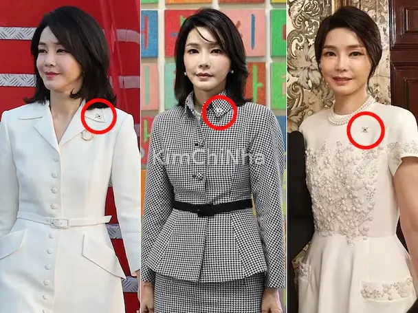 Một điểm chung giữa các đệ nhất phu nhân là họ không đơn thuần chọn đồ đẹp, mà chọn đồ có thể biểu trưng được ngôn ngữ riêng của trang phục. Bà Kim Keon-hee, trong chuyến công du NATO năm 2022, đã sử dụng chiếc huy hiệu hình quốc kỳ Hàn Quốc như một lời giới thiệu. Sau đó, trong một hoạt động cộng đồng, bà mặc đồ mang màu sắc của quốc kỳ Ukraine, gợi liên tưởng đến thông điệp đoàn kết trong thời chiến.