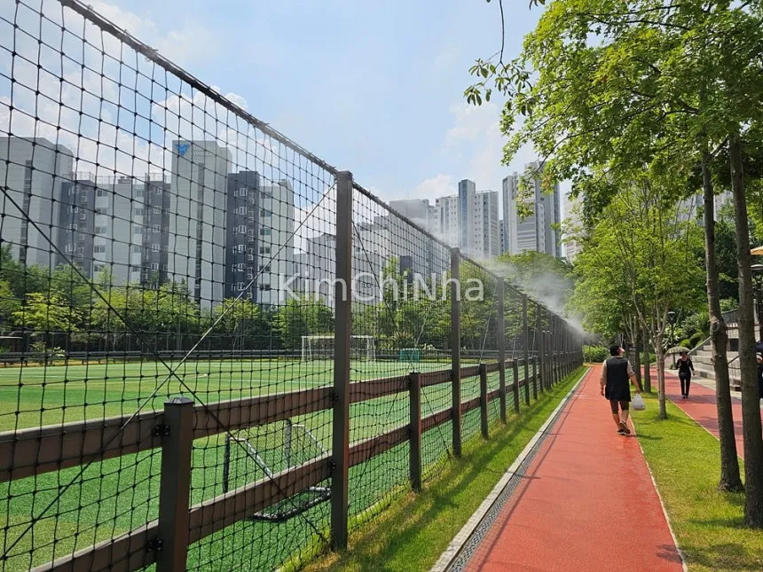 Công viên thể thao Son Kee-chung: buổi trưa, nhiều nhân viên văn phòng và cư dân quanh khu vực đi bộ, chạy bộ trên đường track; cuối tuần, các câu lạc bộ bóng đá vẫn miệt mài luyện tập.