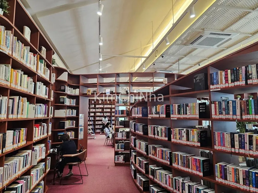 Ngay cạnh khu tưởng niệm là thư viện Son Kee-chung. Không gian ở đây đặc biệt tự do: ghế, bàn, giá sách được bố trí ngẫu hứng. Bạn có thể chọn ngồi trên chiếc ghế gỗ mang dáng dấp cổ điển, hoặc thử cảm giác thư giãn ở chiếc ghế xếp gọn nơi góc phòng. Đây không chỉ là nơi đọc sách mà còn là điểm đến để tìm kiếm sự lắng đọng và cảm hứng sống. Thư viện cũng thường xuyên tổ chức các lớp học văn hóa theo mùa.